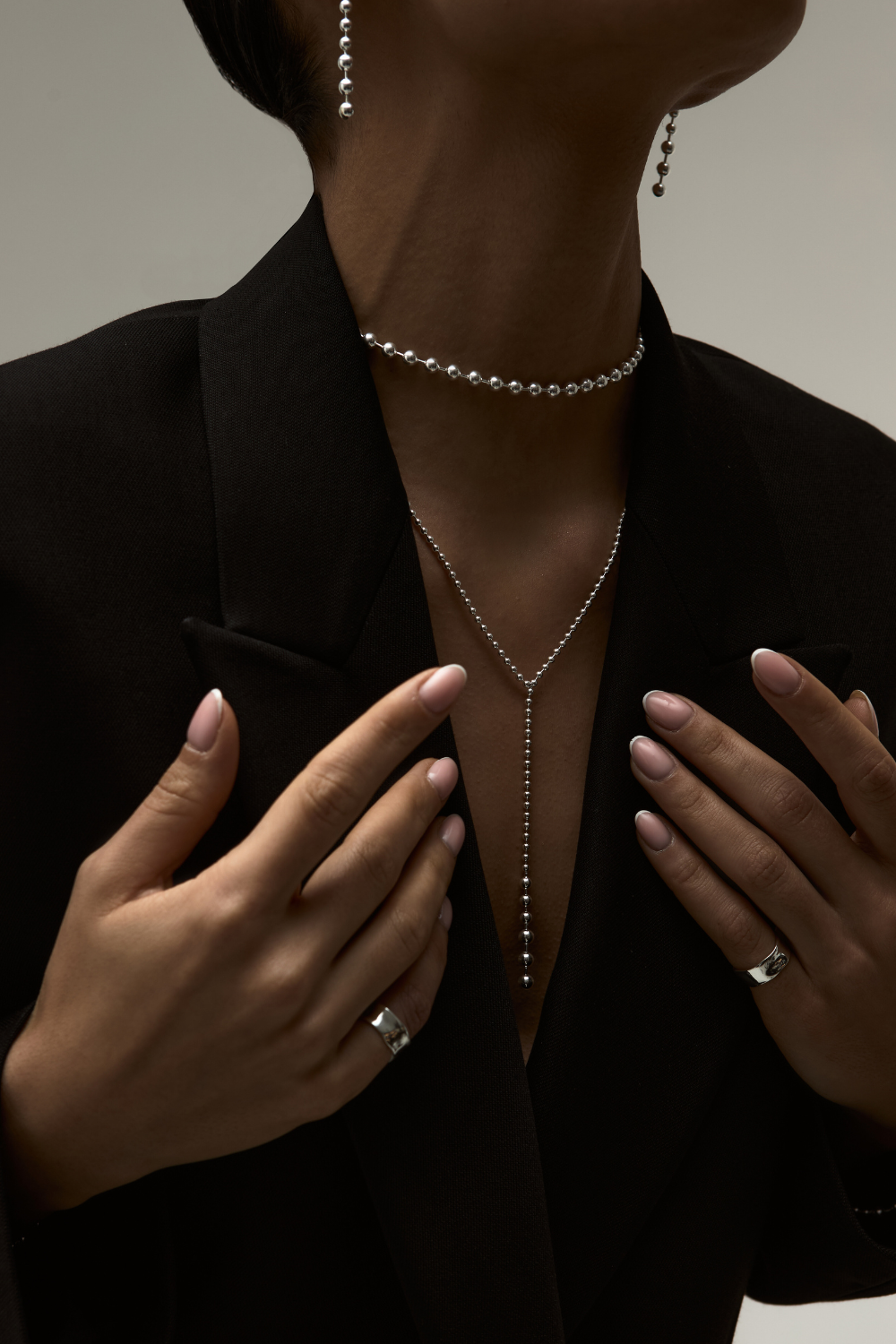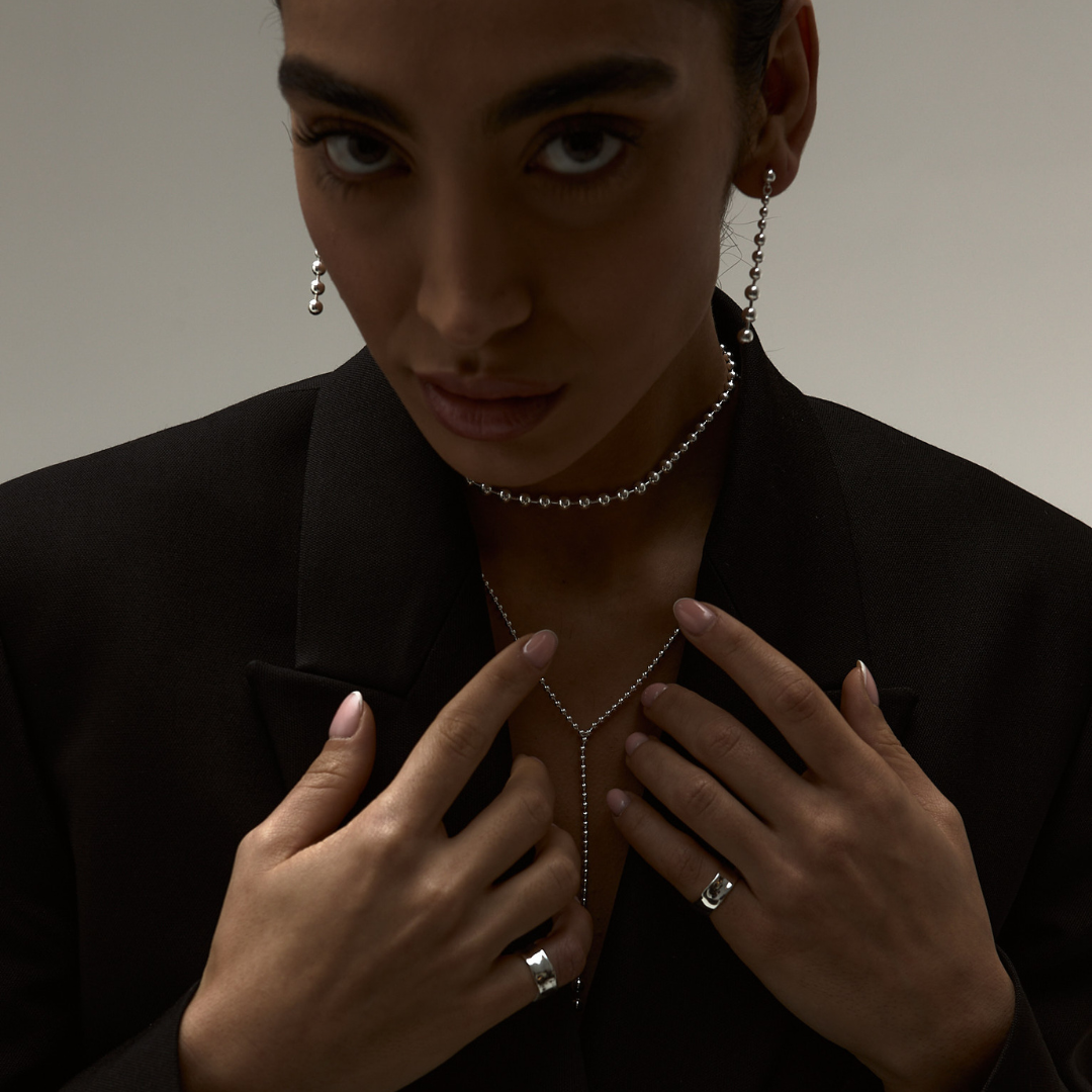 The Ball Dance necklace is part of our essential collection, designed to be versatile and stylish. This piece can be worn as a choker or a more relaxed necklace, thanks to its adjustable length. Made from high-quality sterling silver, its minimalist design makes it a perfect accessory for everyday outfits, adding a subtle yet sophisticated touch to any look. Elegant and timeless, the Ball Dance necklace is a must-have for those who appreciate simplicity and versatility in their jewelry collection.